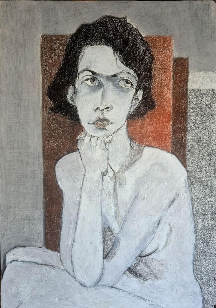 J'essaie d'entrer presque par effraction dans l'intimité du regard. La couleur est mon moteur qui marche à l'huile, au pastel, à l'acrylique et à l'encre. Le regard me fascine, celui du modèle vivant, celui que je vois dans un paysage que je scrute comme un visage. Tout est matière à regarder, l'autre ou moi-même..La couleur me rend heureuse, m'enthousiasme. Elle est partout et pourtant elle est souvent invisible donc j'essaie toujours avec mes petits moyens de la rendre visible. Rosemay 2023
